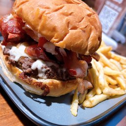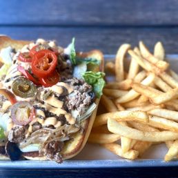 I wish it had a .5 star so I can give it 4.5 star. Our waitress was attentive, however; even though the food looked delicious, it didn't hit the spot. I had the California cheese steak, I could barely eat the whole thing-I just cut it into pieces so I can eat some of it. Not bad for bar food. We decided to sit outside because the weather was nice but could use a good wipe down as there was spider webs in a few chair legs and corner of the chairs. Overall it's was ok, better than most Bar Food olaces